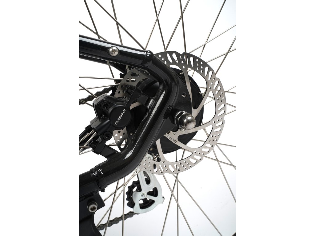 - Hydraulické kotoučové brzdy Tektro s vysokým brzdným účinkem.