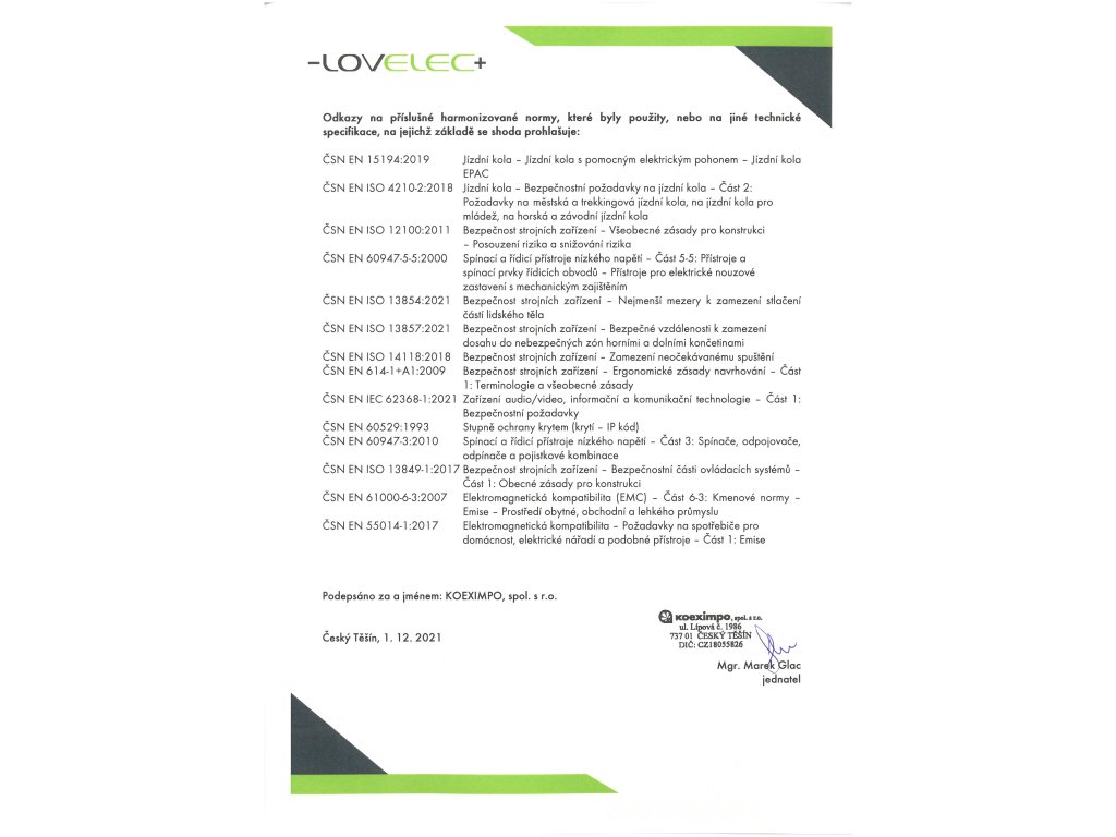 | nabíječka | EN, CE, 36 V, 2 A, doba nabíjení 4–6 hodin |