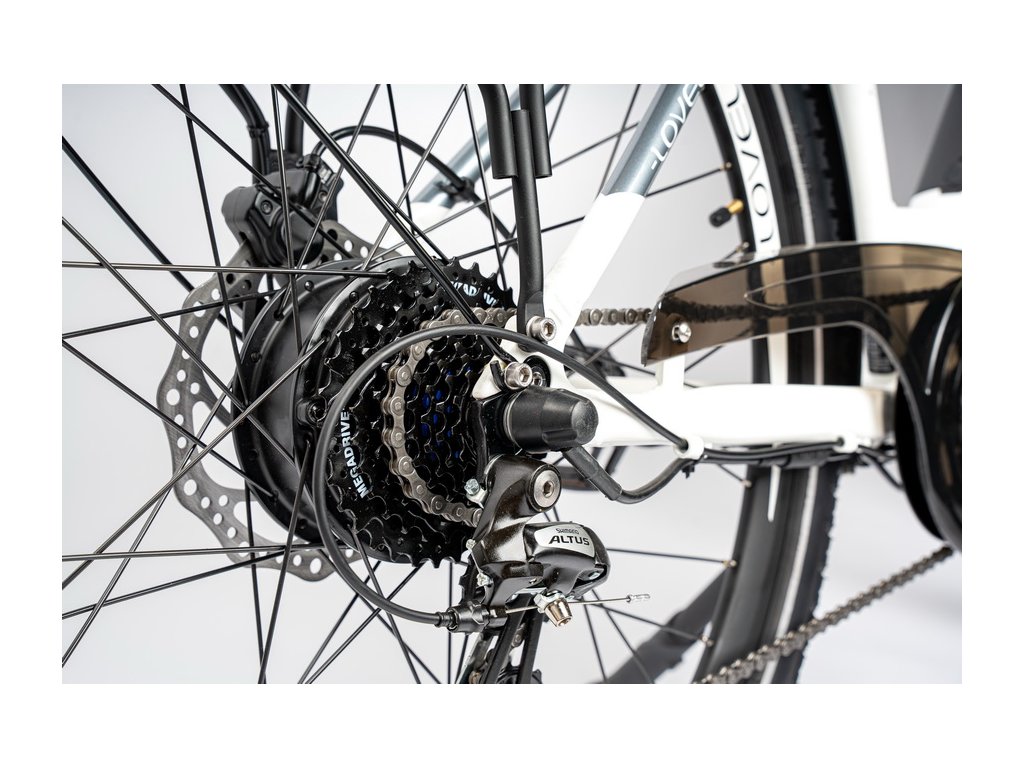 Zadní bezkartáčový motor LOVELEC s nominálním výkonem 250 W šetří vaše síly a pohodlně s ním dosáhnete rychlosti až 25 km/h. Díky točivému momentu 45 Nm si hravě poradí i s většími stoupáními.