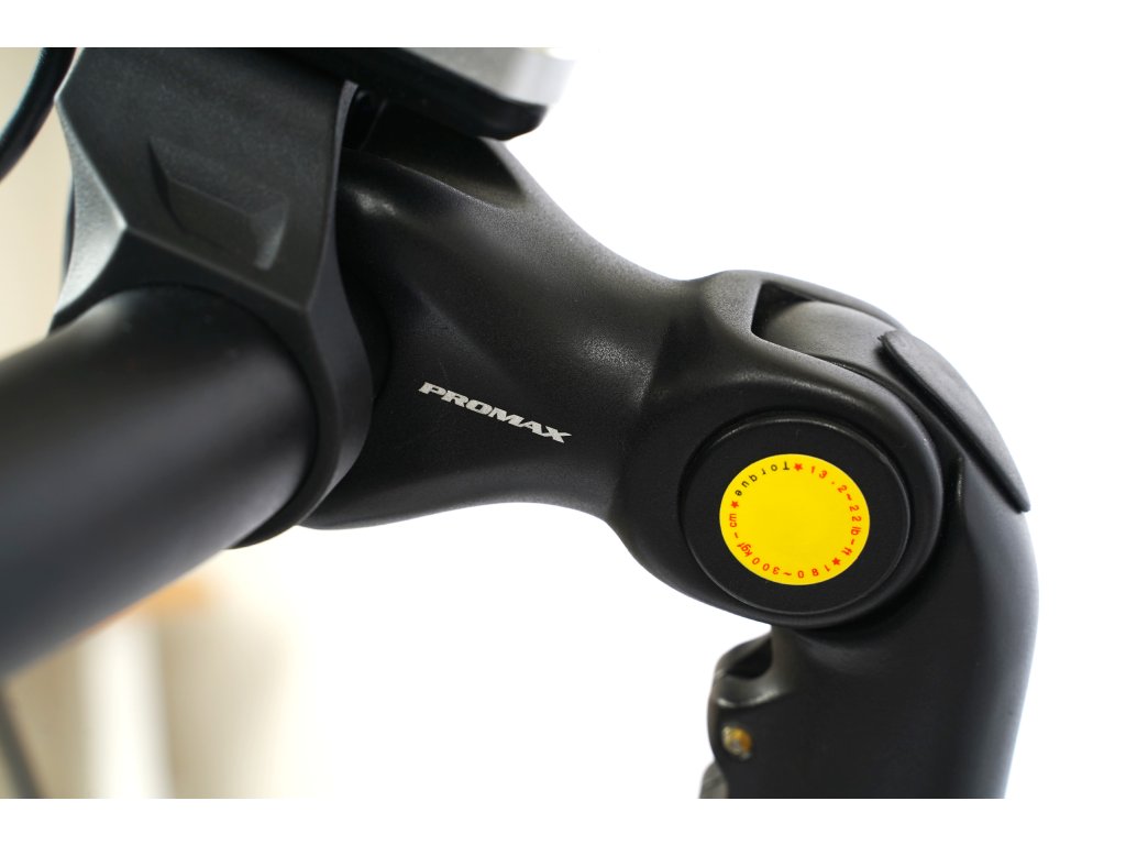 Pohodlné manévrování zaručují řídítka značky Promax s ergonomickými gripy. Jsou lehká a jejich výšku lze upravit pomocí nastavitelného představce. Můžete si je proto přesně přizpůsobit vašim potřebám.