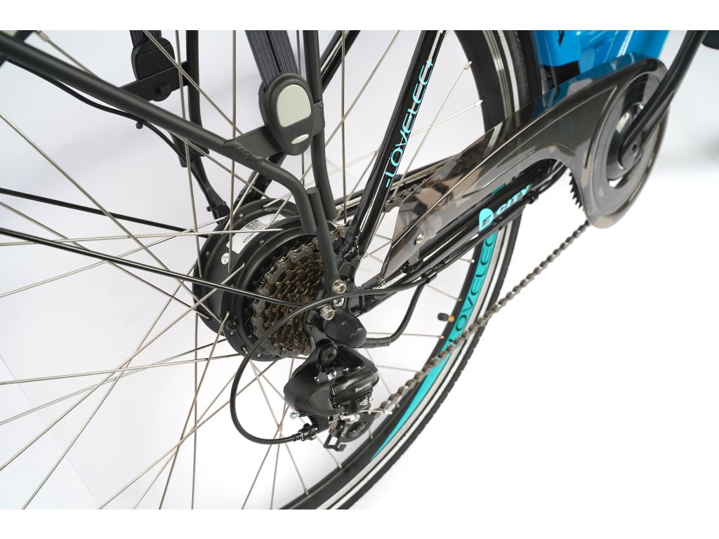 Je vybaveno zadním bezkartáčovým motorem LOVELEC, s nominálním výkonem 250 W a maximálním točivým momentem až 45 Nm, který vám pomůže zvládnout nejtěžší úseky trasy bez námahy. Nabízí silnou podporu do rychlosti 25 km/h. S tímto elektrokolem budete mít vždy dost sil a bez problému zdoláte i případné překážky na trase.