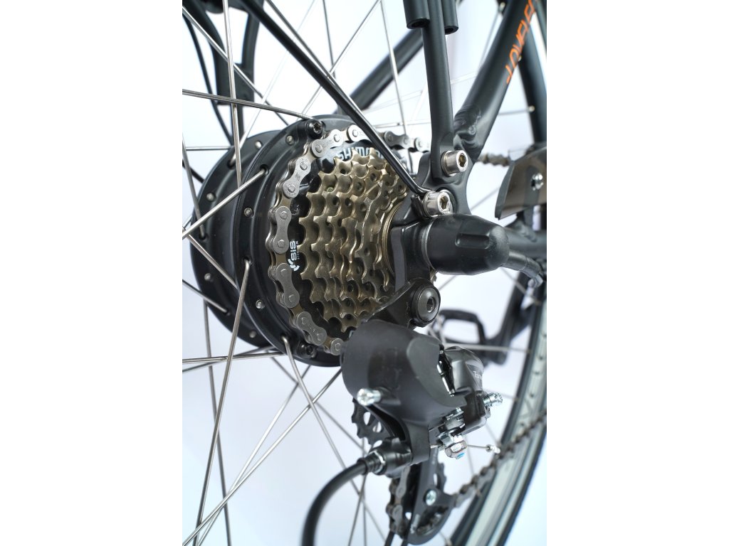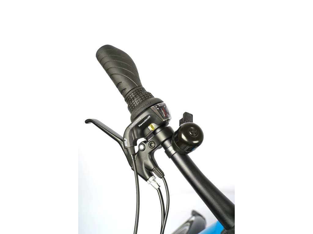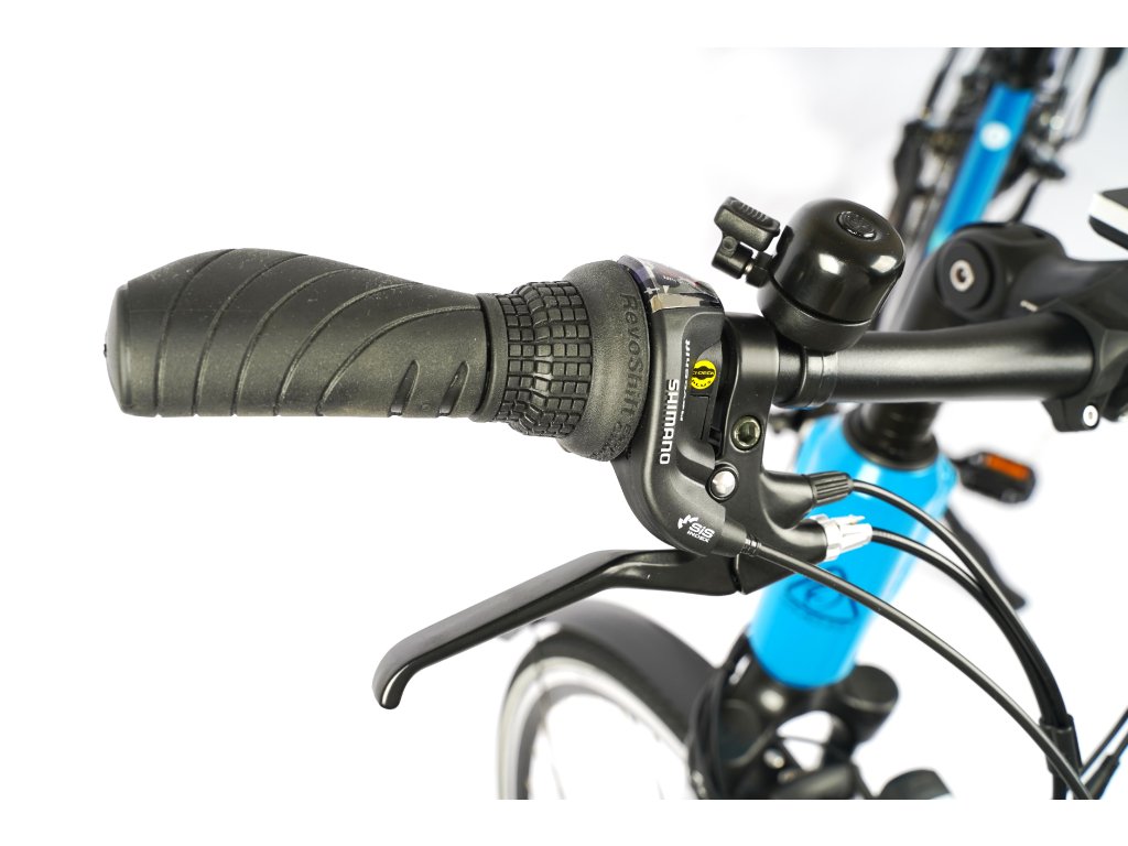Elektrokolo je vybaveno přehazovačkou Shimano Tourney, která je velmi efektivní a zajišťuje spolehlivé a hladké řazení. Je jedno, jestli jedete po rovném úseku nebo stoupáte do strmého kopce, plynulé přechody mezi sedmi volitelnými převody vám umožní jet s lehkostí.