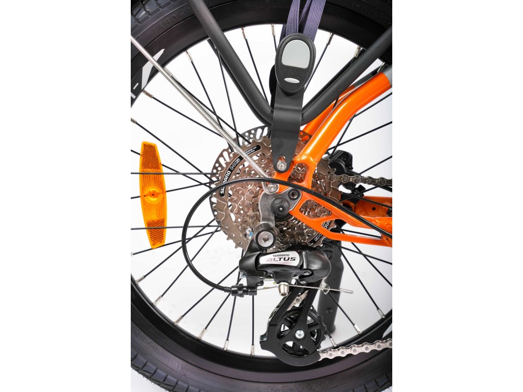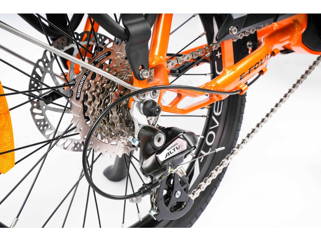 Elektrokolo je vybaveno zadní přehazovačkou Shimano Altus pro hladkou a bezproblémovou jízdu za všech podmínek. V závislosti na typu trasy a preferencích cyklisty si můžete vybrat z 8 převodových stupňů.
