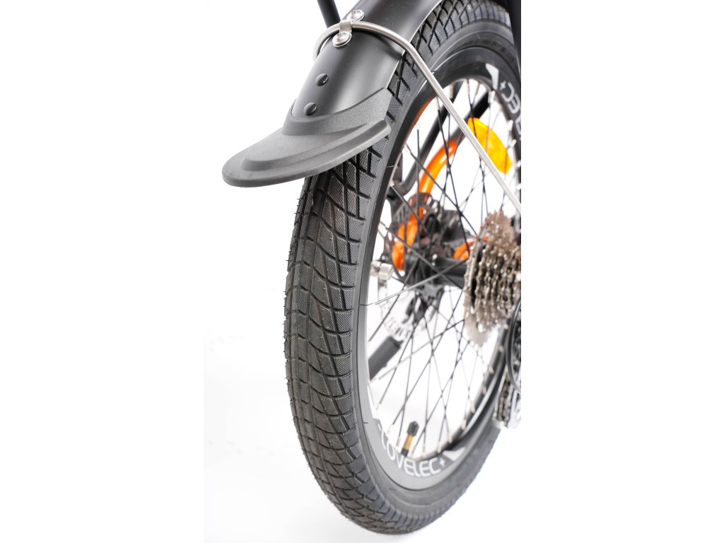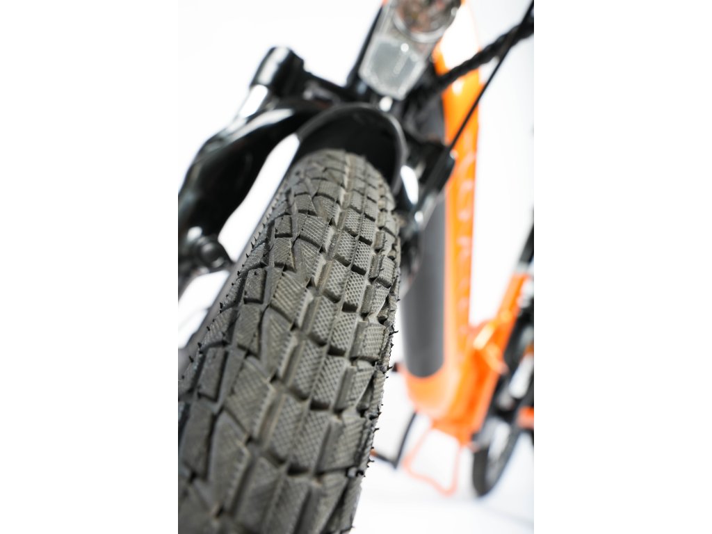 Nezbytnou součástí elektrokola jsou 20palcová kola s plášti 20×1,95, která zaručují velmi dobrou přilnavost a bezpečnost i při rychlé jízdě. Díky nim si elektrokolo udržuje stabilitu v zatáčkách a skvěle si poradí na suchém i mokrém povrchu vozovky.