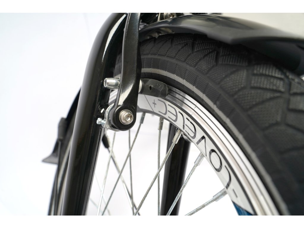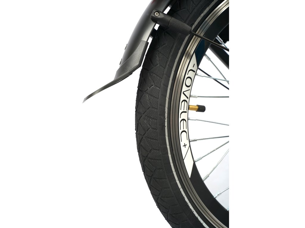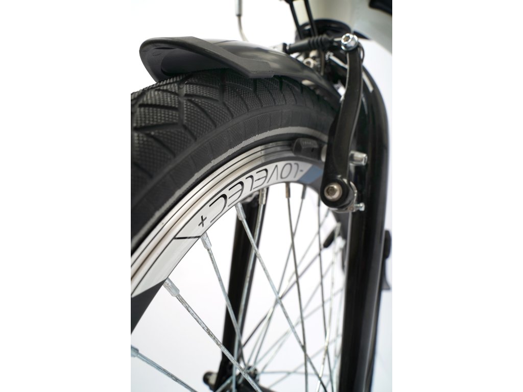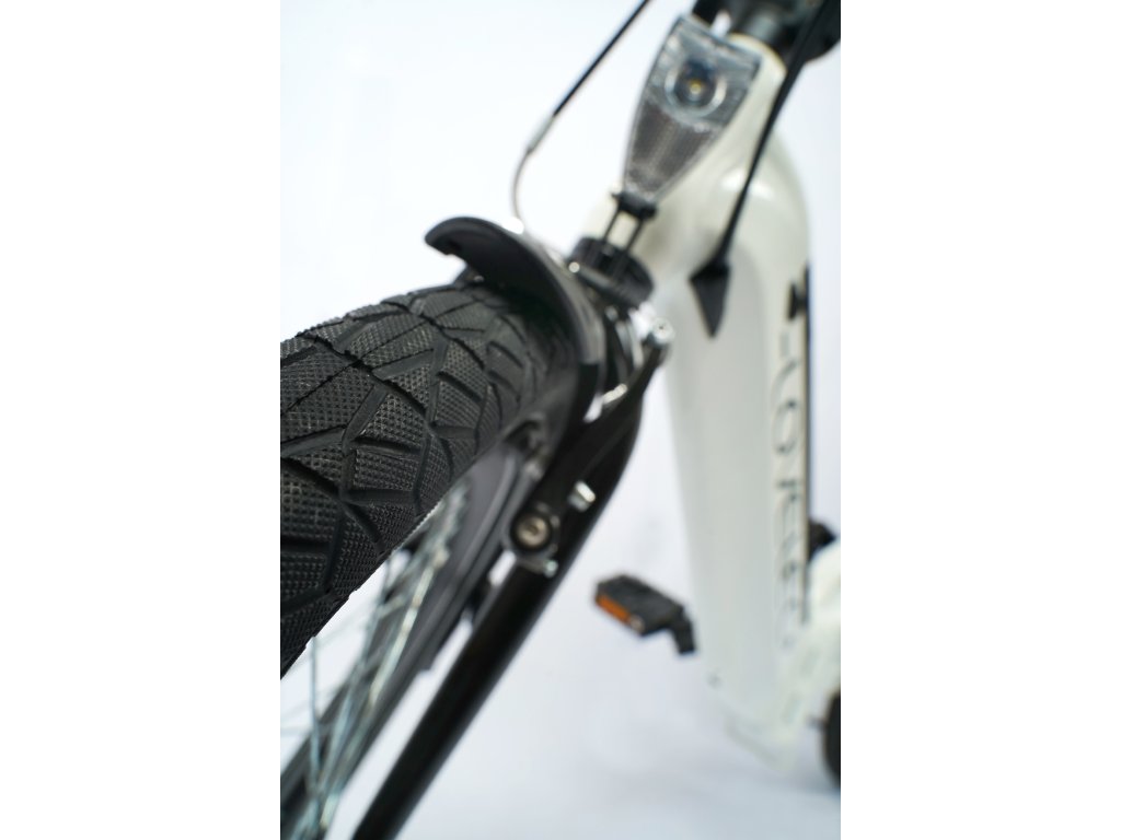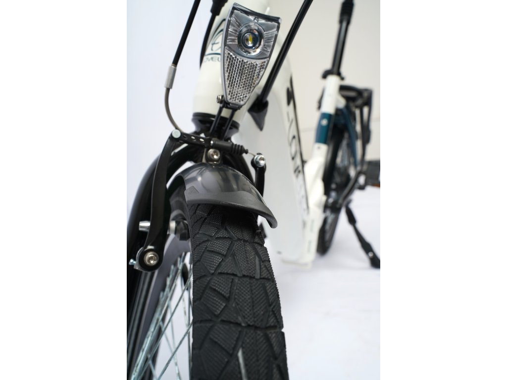 20palcová kola s pneumatikami 20×1,95 zaručují velmi dobrou přilnavost a bezpečnost. Umožňují udržet stabilitu elektrokola v zatáčkách a dobře fungují na suchém i mokrém povrchu. Hravě zvládnou cestu po městských výmolech i dlažebních kostkách.