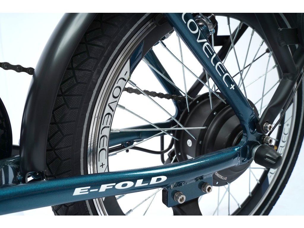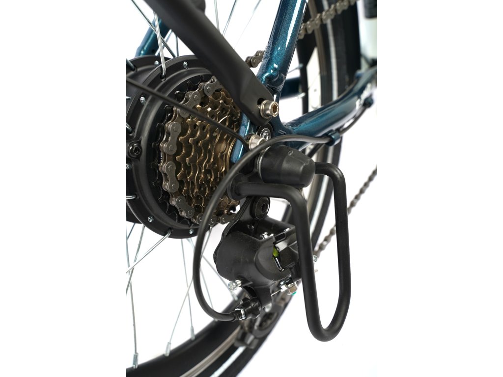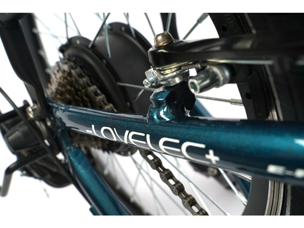 Srdcem elektrokola je zadní bezkartáčový motor značky LOVELEC, který zajišťuje dynamickou jízdu a zrychlení až na 25 km/h. S nominálním výkonem 250 W a točivým momentem 45 Nm poskytuje citlivou asistenci a umožňuje překonávat četné kilometry a prudká stoupání bez námahy.